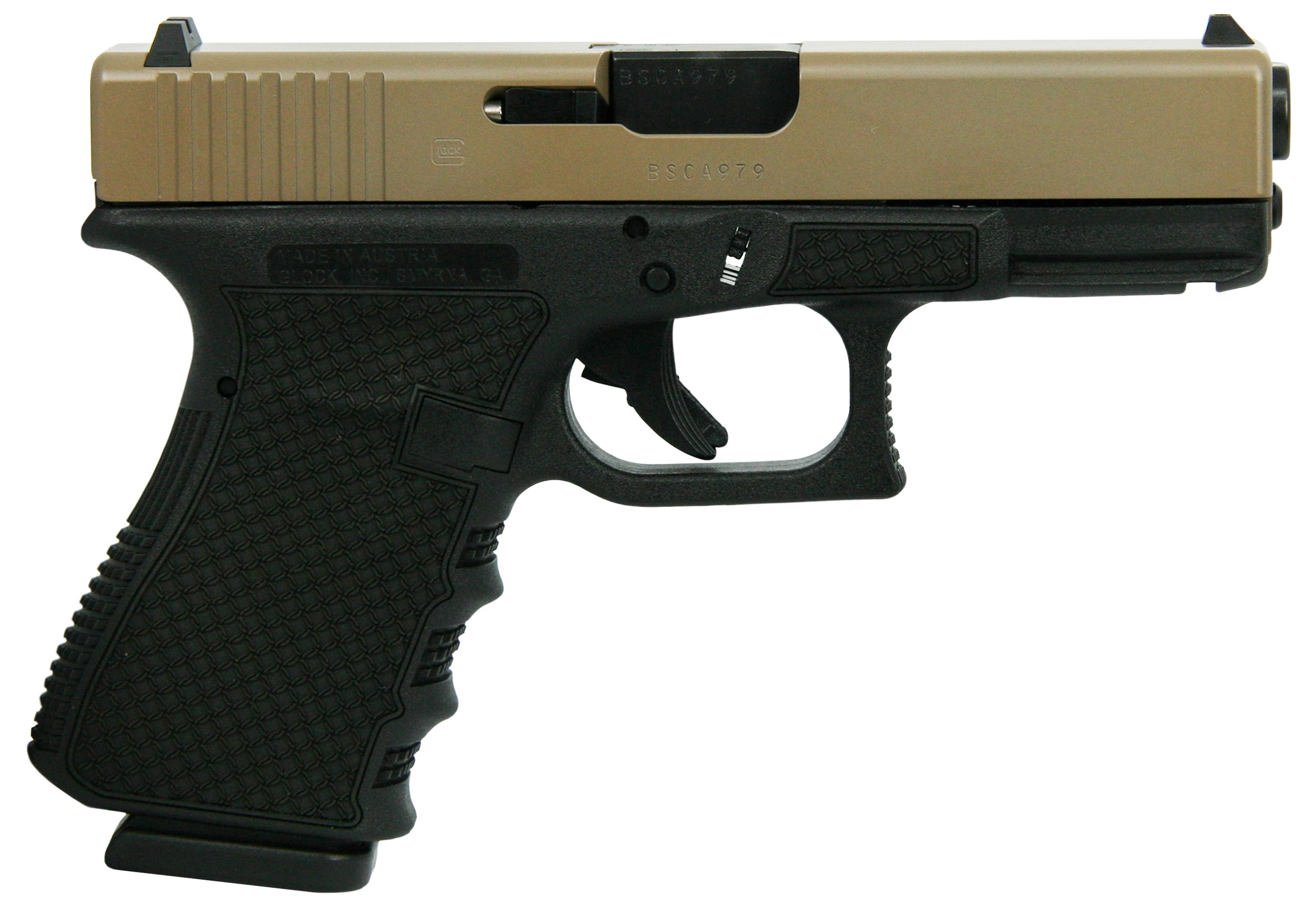 - Glock 19 Gen 3 Austria Handgun 9mm Luger 15rd Magazines 4.02″ Barrel FDE Slide Polymer Chainmail Stippled Frame